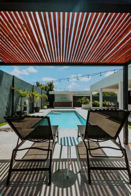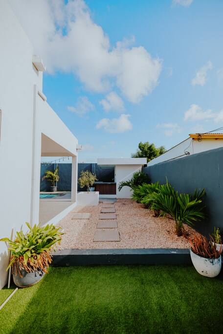 This fully private villa is perfectly located near beautiful beaches, restaurants, and supermarkets. You can truly relax and unwind while creating memories that will last a lifetime. Our vision was to create a serene and cozy space where you can fully embrace the laid-back island lifestyle. Start your mornings with breakfast on the patio, enjoy leisurely lunches or dinners, and end the day with drinks shared with friends or family all while forgetting about the clock and soaking in the moment.