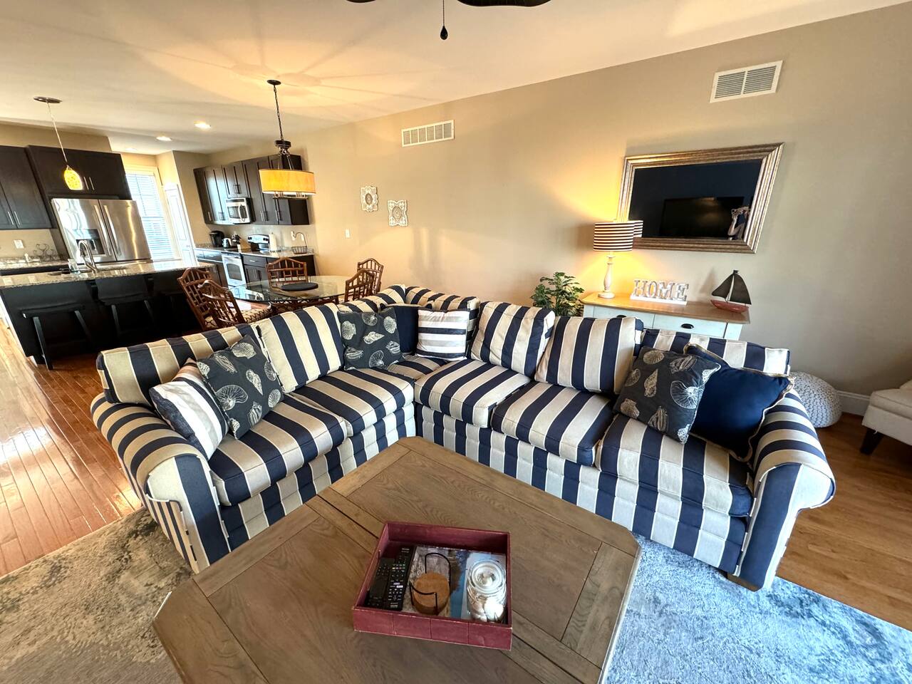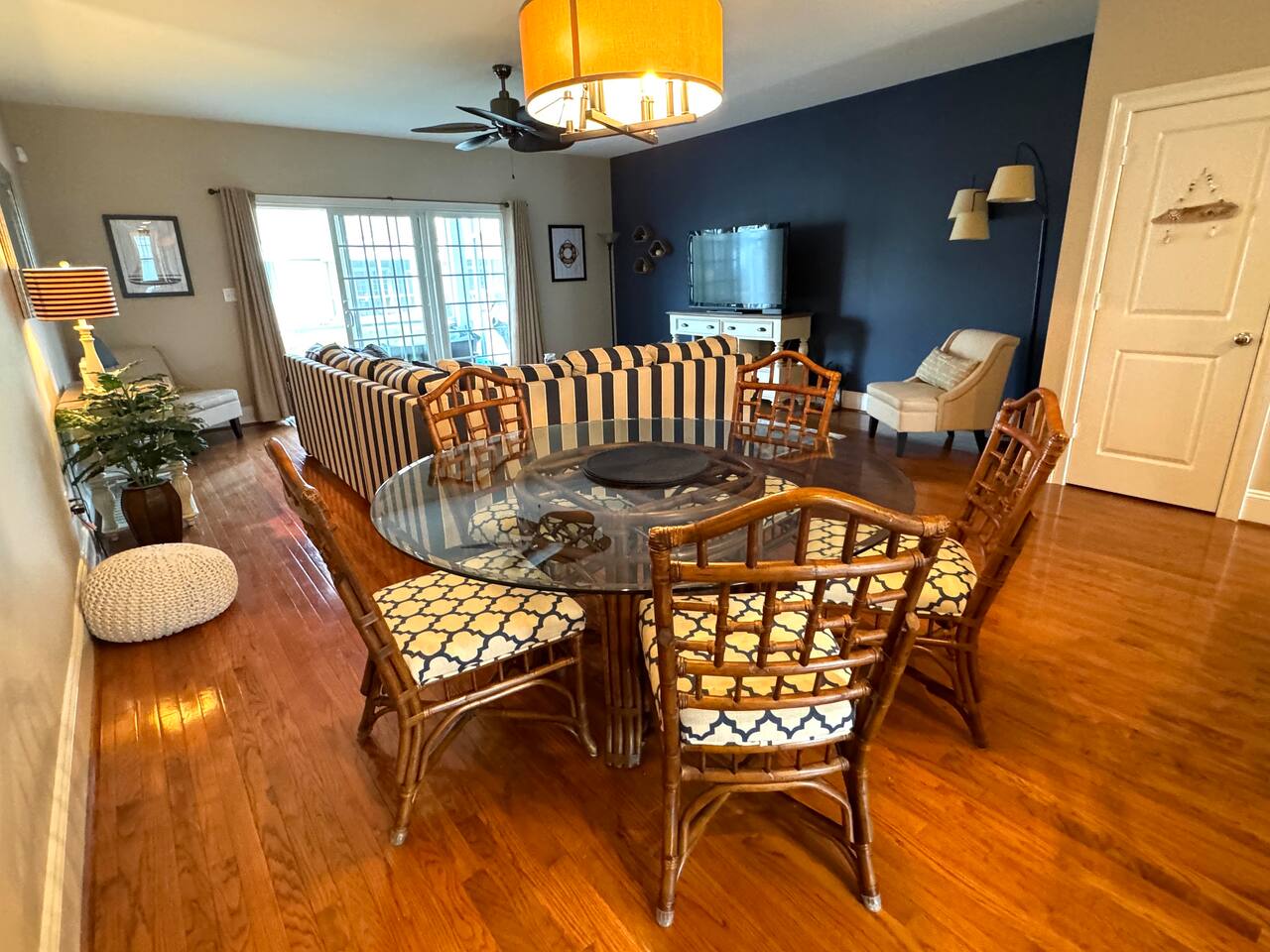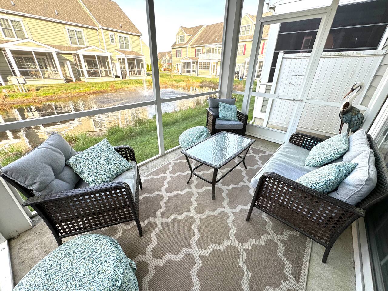 As you step inside, you'll be greeted by a bright and spacious living area. The open floor plan seamlessly connects the living room, dining area, and fully equipped kitchen, creating an ideal space for entertaining or relaxing with your loved ones. Kitchen & Dining: The kitchen boasts modern appliances, ample counter space, and all the necessary cookware and utensils needed for guests to make home cooked meals on vacation. Enjoy your meals at our breakfast bar (seats 3) or the adjacent dining room table (seats 5). Living Area: You'll find a cozy and inviting living area complete with comfortable couches and a smart TV for streaming. Private screened-in porch: Enjoy your morning cup of coffee or evening glass of wine on our screened-in porch while overlooking our community pond and fountain. Bed and Bath: Our condo features three comfortable bedrooms, each with their own private, full bathroom. Primary suite: Located separately from the other two bedrooms on the third floor, our primary suite boasts a plush king-sized bed and a private en-suite bathroom. First guest bedroom: Our first guest bedroom offers a cozy, queen-size bed and private ensuite. Located on the second floor. Second guest bedroom: Similar to the first guest bedroom, this bedroom is also located on the second floor, featuring a queen-sized bed and private ensuite. * Please note, linens (including sheets, bath and beach towels) WILL be included.* * We provide shampoo, conditioner, body wash, dish detergent, dishwasher tablets, trash bags and we will get you started on paper towels and toilet paper * Seasonal community pool: When you're not out enjoying the sun and sand at the beach, take advantage of our beautiful community pool. Dive into the sparkling pool or lounge on the sundeck with a good book. The pool is accessible with the provided key card. There is a $50 replacement fee for lost key cards. Pool is open from Memorial Day - Labor Day and the daily hours are 8 AM - 9 PM. Extra Perks & More Details: Extra perks include a full-size washer and dryer with complimentary laundry detergent. 2 reserved parking spaces located directly in front of the townhouse. Additional overflow parking spaces can be found on the end of the street.
