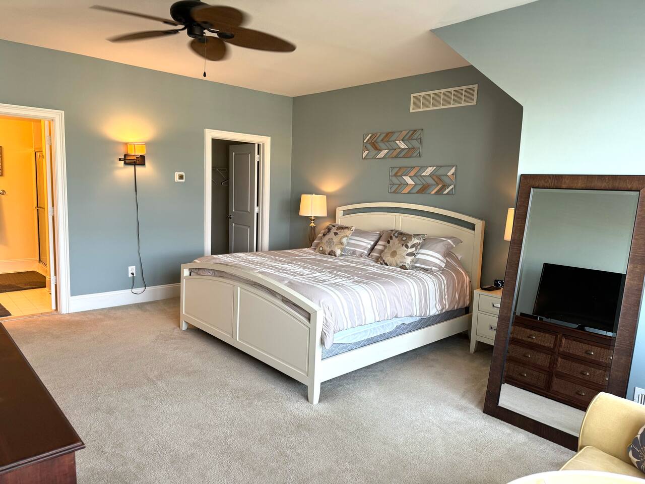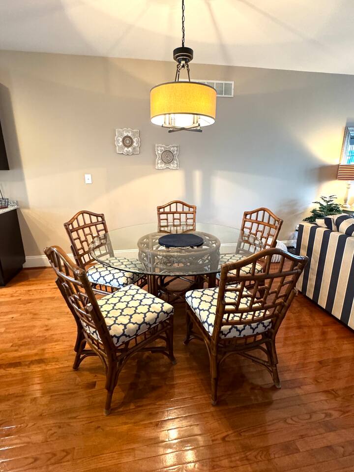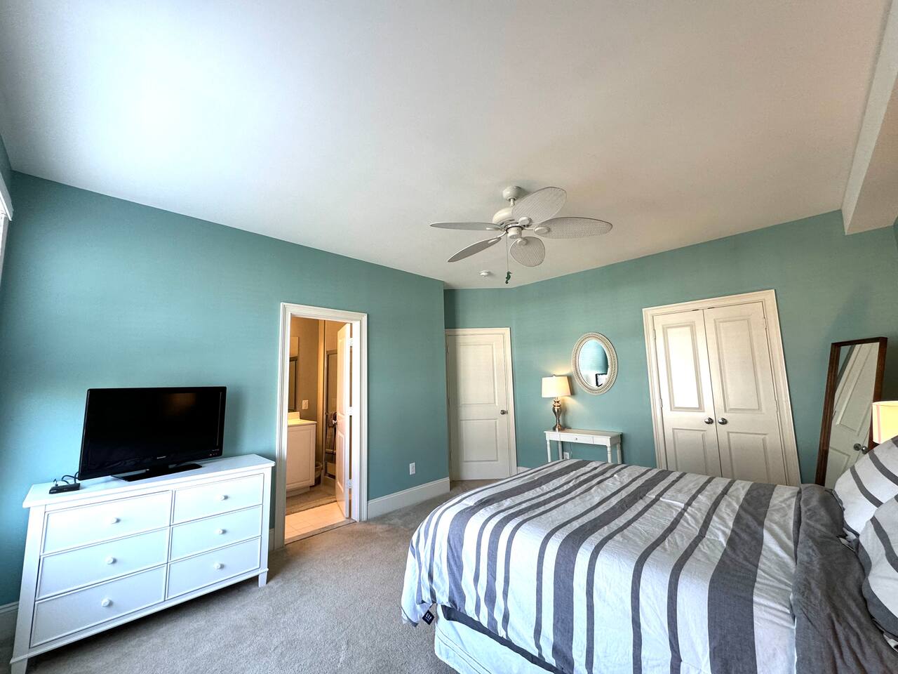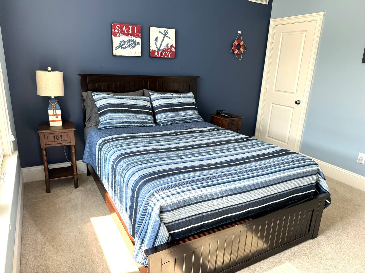 As you step inside, you'll be greeted by a bright and spacious living area. The open floor plan seamlessly connects the living room, dining area, and fully equipped kitchen, creating an ideal space for entertaining or relaxing with your loved ones. Kitchen & Dining: The kitchen boasts modern appliances, ample counter space, and all the necessary cookware and utensils needed for guests to make home cooked meals on vacation. Enjoy your meals at our breakfast bar (seats 3) or the adjacent dining room table (seats 5). Living Area: You'll find a cozy and inviting living area complete with comfortable couches and a smart TV for streaming. Private screened-in porch: Enjoy your morning cup of coffee or evening glass of wine on our screened-in porch while overlooking our community pond and fountain. Bed and Bath: Our condo features three comfortable bedrooms, each with their own private, full bathroom. Primary suite: Located separately from the other two bedrooms on the third floor, our primary suite boasts a plush king-sized bed and a private en-suite bathroom. First guest bedroom: Our first guest bedroom offers a cozy, queen-size bed and private ensuite. Located on the second floor. Second guest bedroom: Similar to the first guest bedroom, this bedroom is also located on the second floor, featuring a queen-sized bed and private ensuite. * Please note, linens (including sheets, bath and beach towels) WILL be included.* * We provide shampoo, conditioner, body wash, dish detergent, dishwasher tablets, trash bags and we will get you started on paper towels and toilet paper * Seasonal community pool: When you're not out enjoying the sun and sand at the beach, take advantage of our beautiful community pool. Dive into the sparkling pool or lounge on the sundeck with a good book. The pool is accessible with the provided key card. There is a $50 replacement fee for lost key cards. Pool is open from Memorial Day - Labor Day and the daily hours are 8 AM - 9 PM. Extra Perks & More Details: Extra perks include a full-size washer and dryer with complimentary laundry detergent. 2 reserved parking spaces located directly in front of the townhouse. Additional overflow parking spaces can be found on the end of the street.
