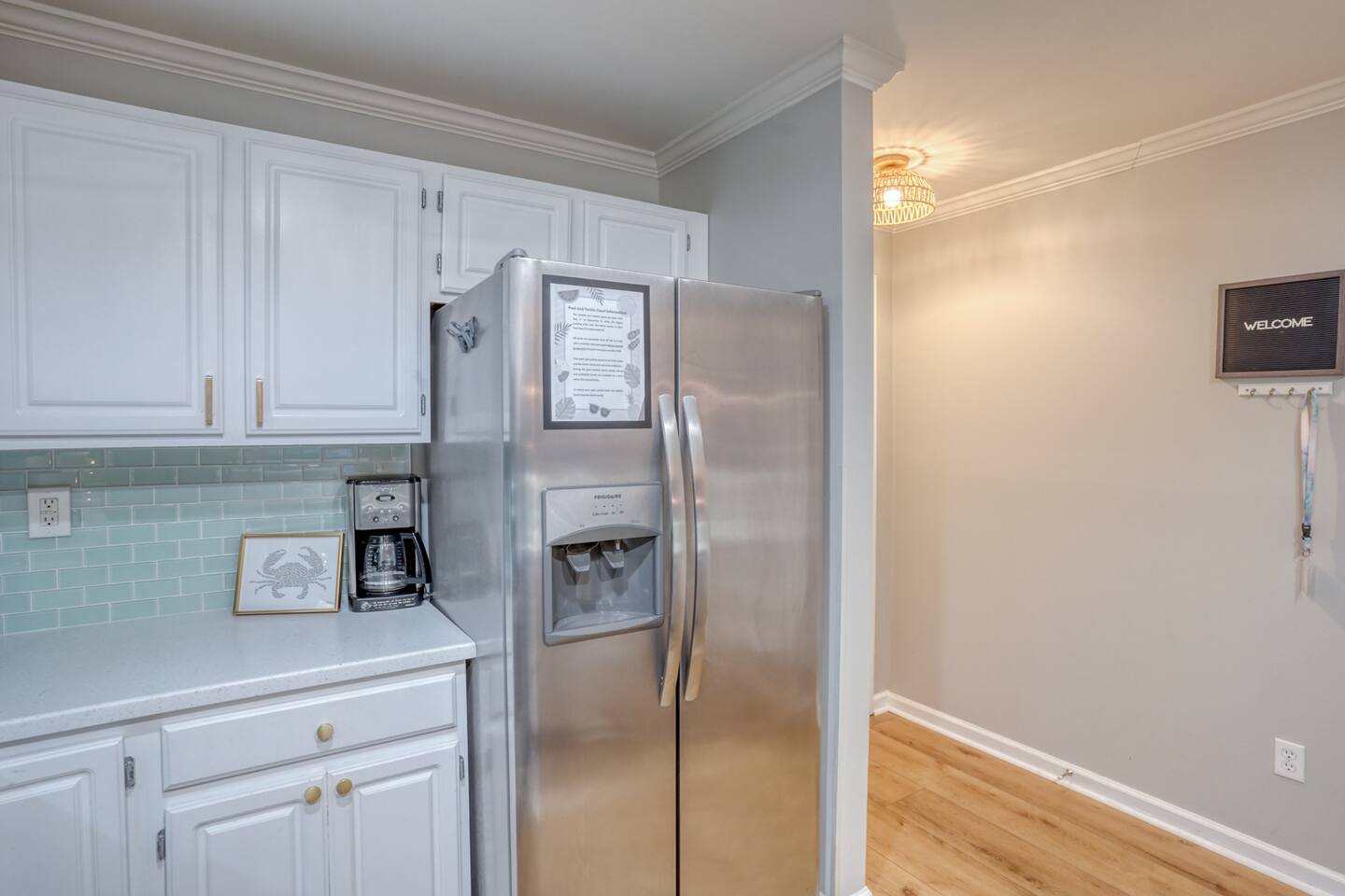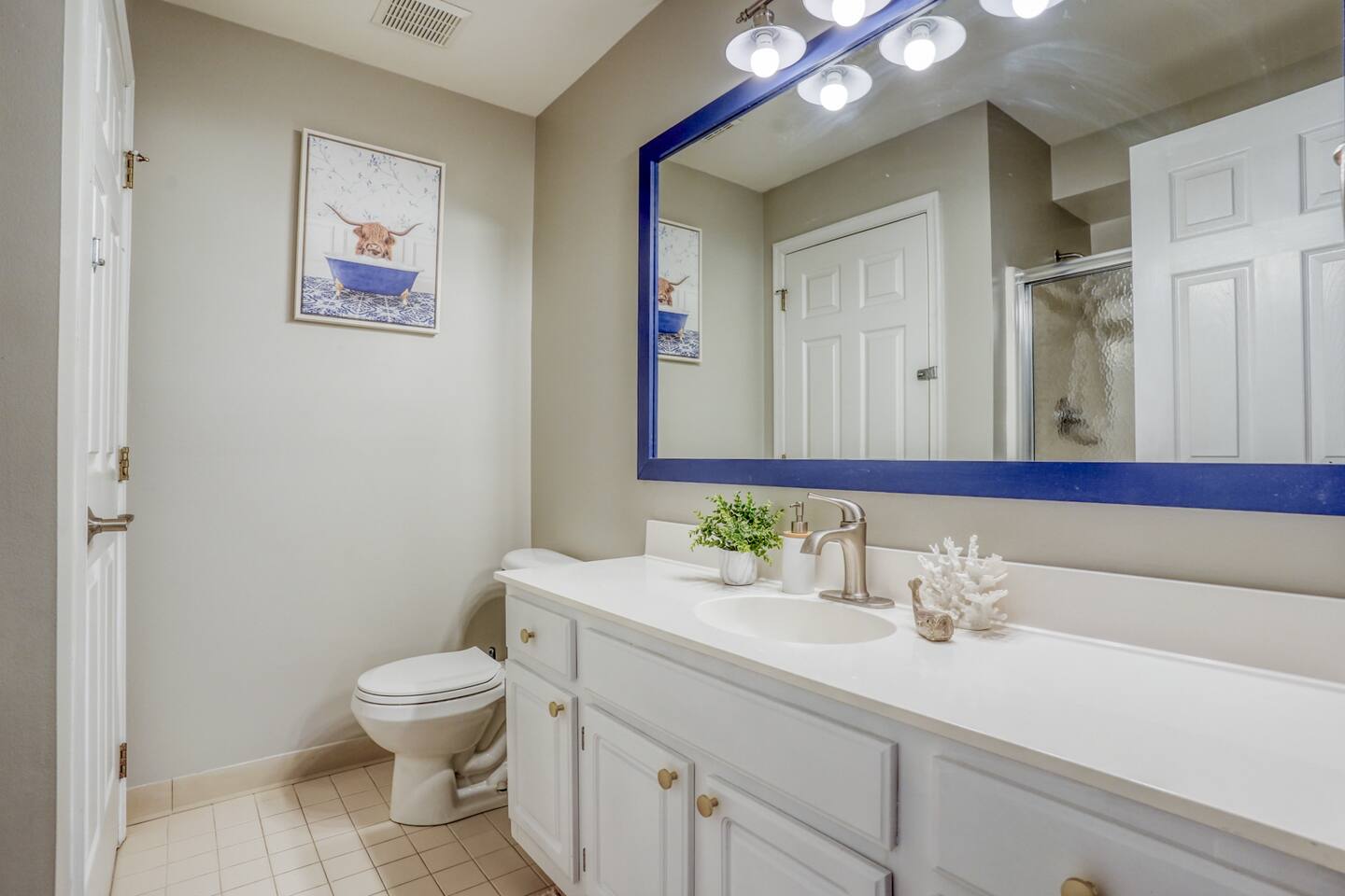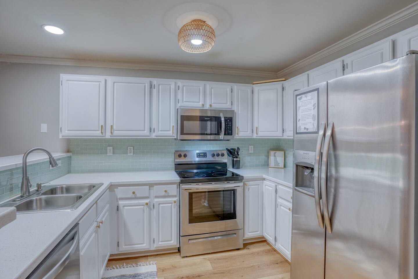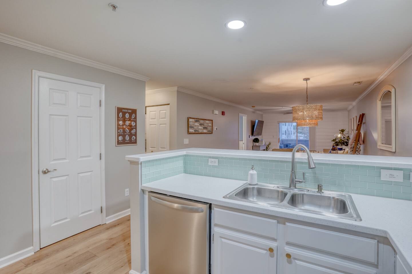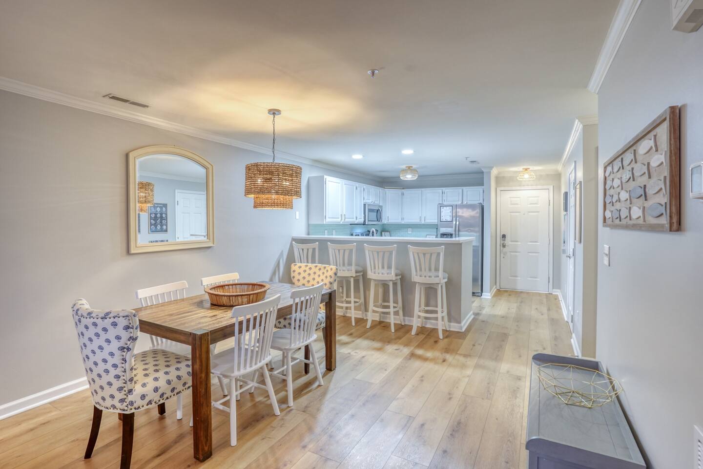 Be aware that the second-floor condo is accessible via stairs. An elevator is available, but it only reaches the third floor, so you will need to walk down one flight of stairs to access the condo. As you enter the front door, you'll find a well-stocked, modern kitchen. To the left is the guest bedroom, which sleeps five guests comfortably with a full-size bed (and single trundle) and a twin bunk bed. Adjacent to the guest bedroom is a full bathroom featuring a bath tub and shower combination. Further into the condo, you'll find the primary bedroom, equipped with a king-size bed, a flat screen smart TV, and an ensuite bathroom with a large vanity and walk-in shower. The living room offers cozy seating and another flat screen smart TV. Just off the living room, step onto the screened-in porch overlooking the community pond and fountain, complete with patio furniture and a hammock swing for your relaxation. Enjoy the peaceful views and unwind in this inviting outdoor space. The condo includes a stackable washer and dryer with complimentary detergent, as well as provided sheets and bath towels for your convenience. Beach chairs, an umbrella, and boogie boards are available for your use as well.