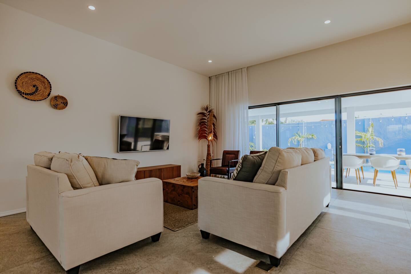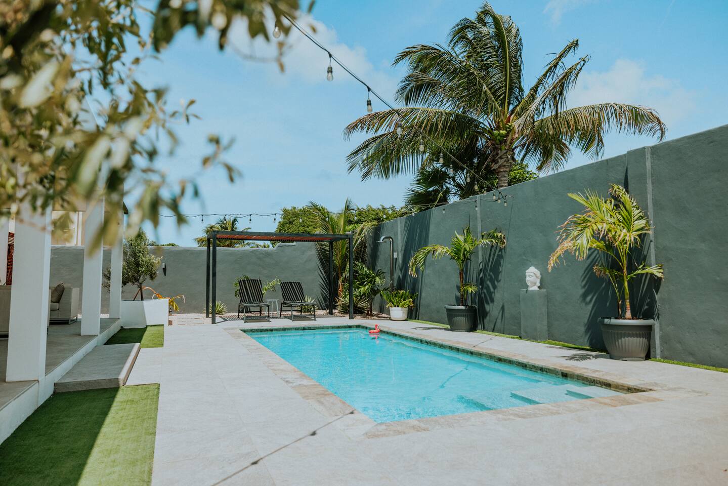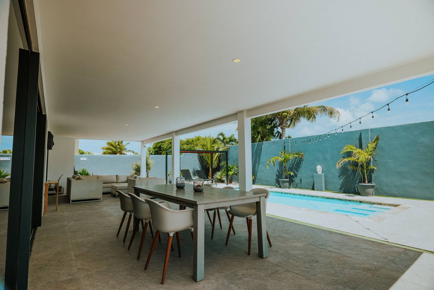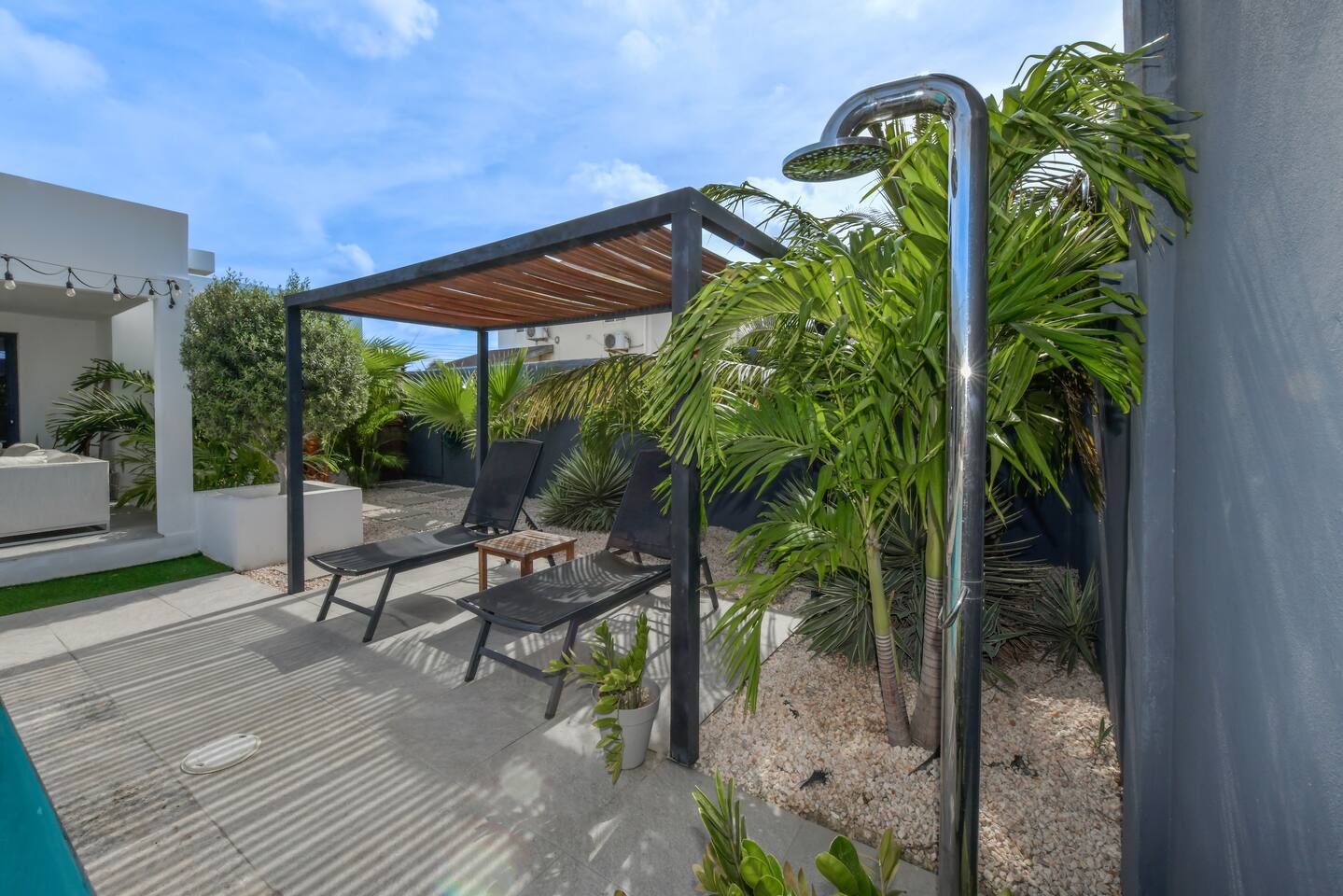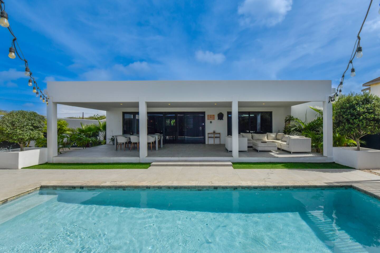 Peace and tranquility await at Villa Nomada, just a 2-minute drive from Eagle Beach and 5 minutes from Oranjestad. Thoughtfully renovated with love and care, this villa combines beach living with island charm, creating a beautifully minimal and serene retreat for much-needed rest and relaxation. Each room is styled with soft neutral tones and natural wooden furnishings, evoking a warm island feel while maintaining a sense of simplicity and calm. Centrally located yet wonderfully private, Villa Nomada allows you to fully embrace the laid-back island lifestyle. Step into the garden and discover your own private oasis. The shaded patio is perfect for wining and dining, while the pool invites you to cool off and recharge. Designed to slow life down, the garden offers everything you need - and nothing you don’t. Unwind with long, lazy meals, sunbathe on the loungers, sip refreshing drinks from the bar, or indulge in an afternoon nap in the island breeze.