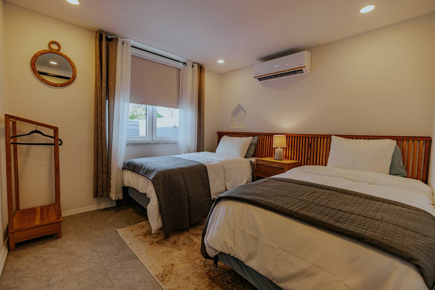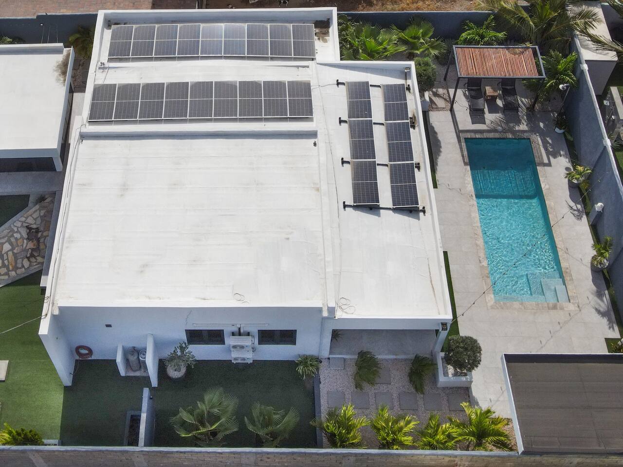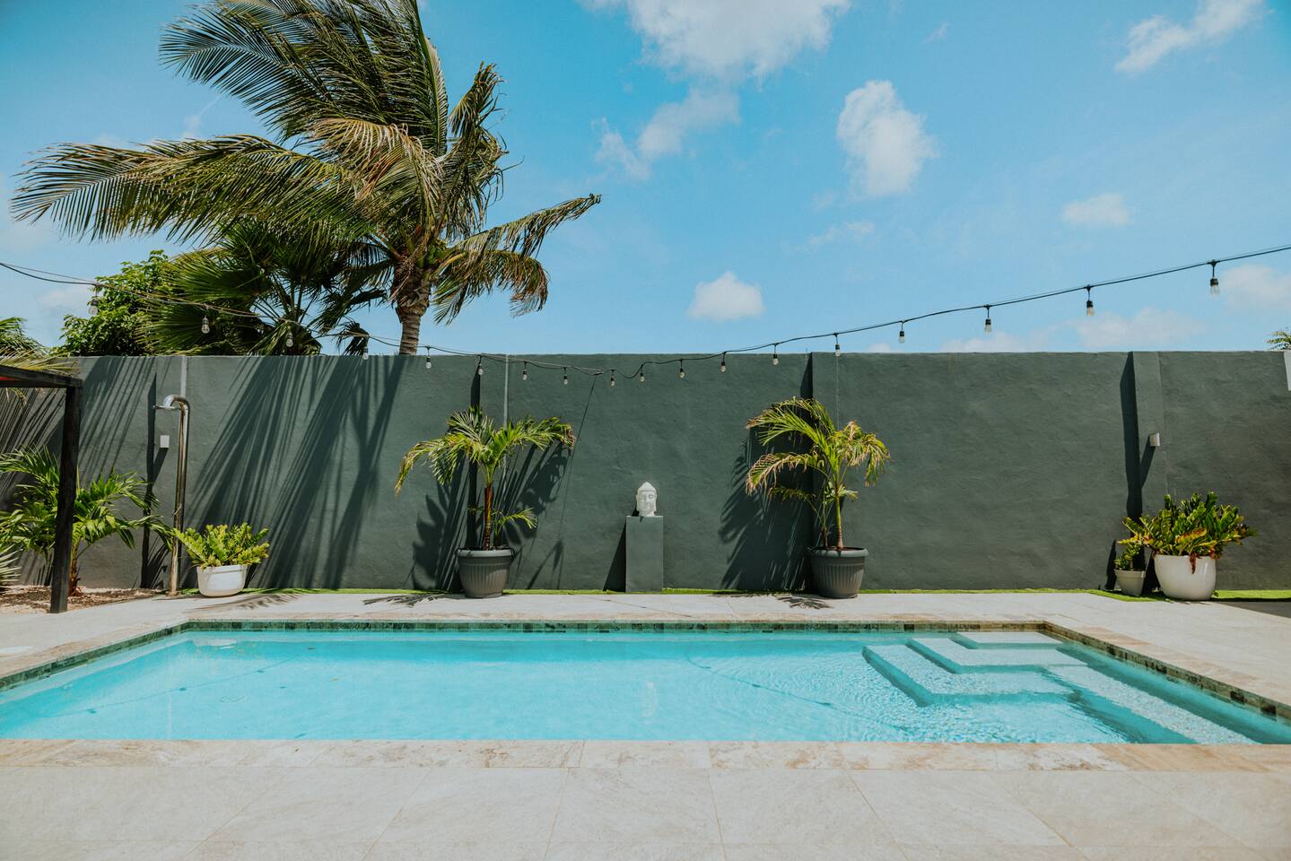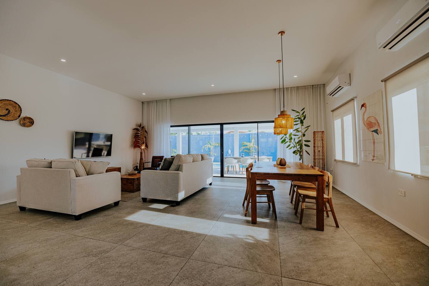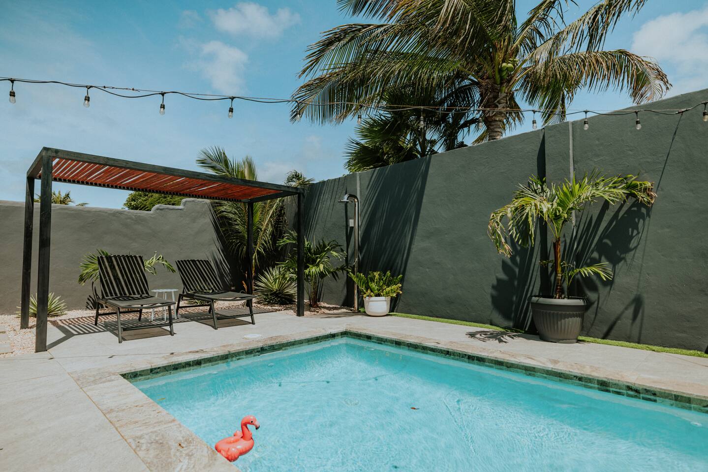 Peace and tranquility await at Villa Nomada, just a 2-minute drive from Eagle Beach and 5 minutes from Oranjestad. Thoughtfully renovated with love and care, this villa combines beach living with island charm, creating a beautifully minimal and serene retreat for much-needed rest and relaxation. Each room is styled with soft neutral tones and natural wooden furnishings, evoking a warm island feel while maintaining a sense of simplicity and calm. Centrally located yet wonderfully private, Villa Nomada allows you to fully embrace the laid-back island lifestyle. Step into the garden and discover your own private oasis. The shaded patio is perfect for wining and dining, while the pool invites you to cool off and recharge. Designed to slow life down, the garden offers everything you need - and nothing you don’t. Unwind with long, lazy meals, sunbathe on the loungers, sip refreshing drinks from the bar, or indulge in an afternoon nap in the island breeze.